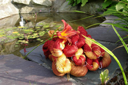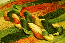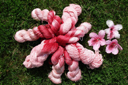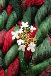 This year I will create one new variegated colour every month inspired by my garden. You will see three pictures every month. First is the inspiration, second the dyed yarn and the third is the final project. I’ll keep the formula on file, if you would like to have the same colours, I can dye them for you.